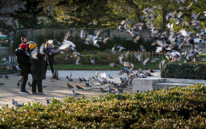 Yesterday was a beautiful day in Paris. It was sunny, not too cold, and bustling with holiday spirit. I left for French class early to soak up the sun, and as I walked, I brainstormed blog topics for this week. I had just decided on a photo-laden post about the holiday lights strung up across the City of Light when a pigeon flew into my head and changed everything.